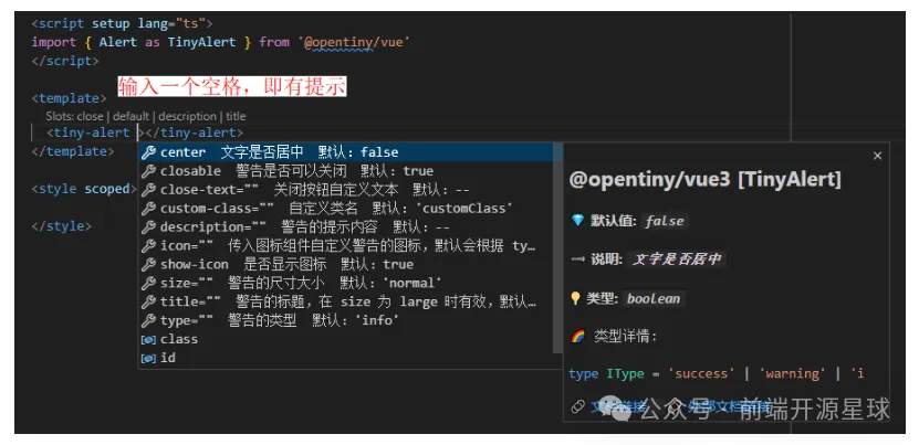 有了 common-intellisense 的加持,我们一起来看看 TinyVue 组件的使用体验如何吧!