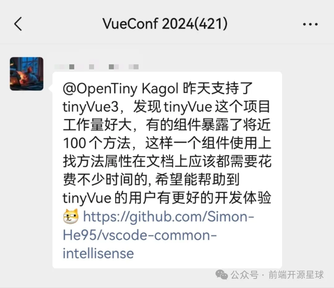 前两天,common-intellisense 开源项目的作者 Simon-He95 在 VueConf 2024 群里发了一个重磅消息: common-intellisense 支持 TinyVue 组件库啦!