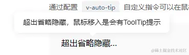 <div class="auto-tip" v-auto-tip>超出省略隐藏,鼠标移入是会有ToolTip提示</div>