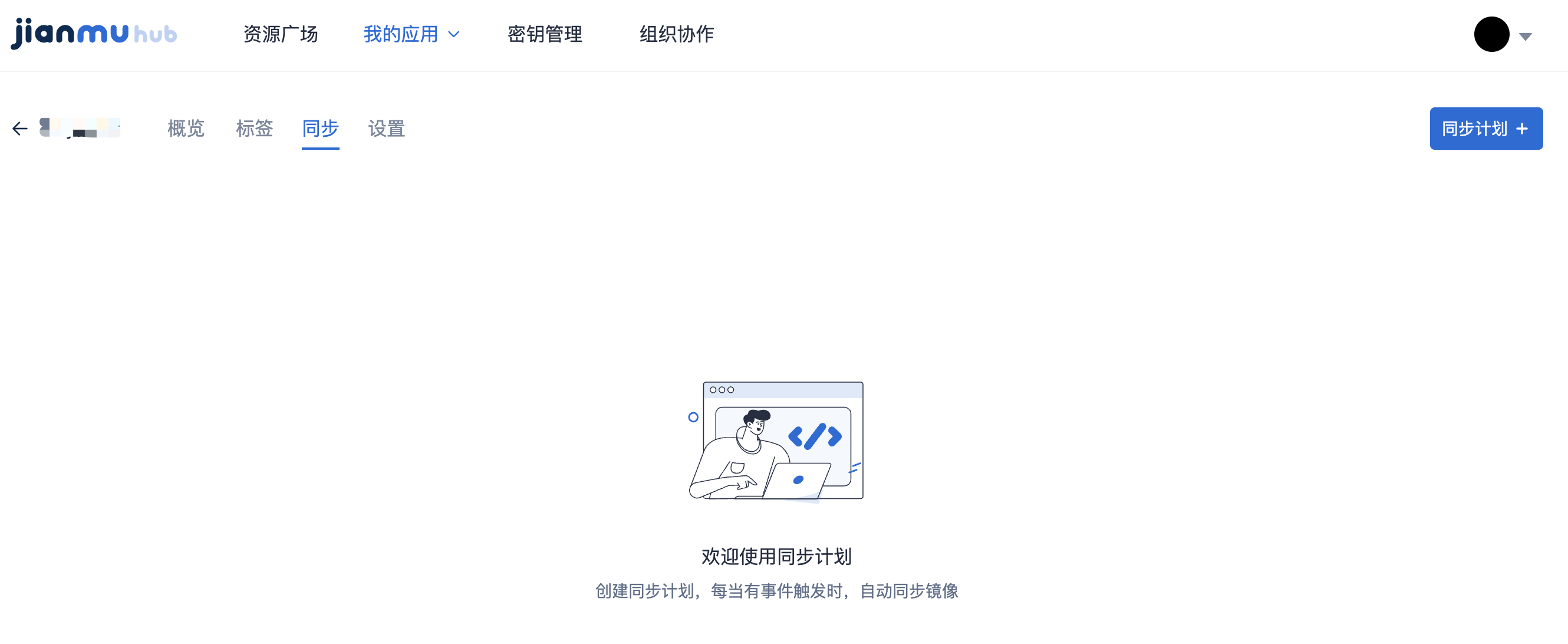 2、镜像仓库创建成功后,点击 同步 菜单,进入同步计划管理页。