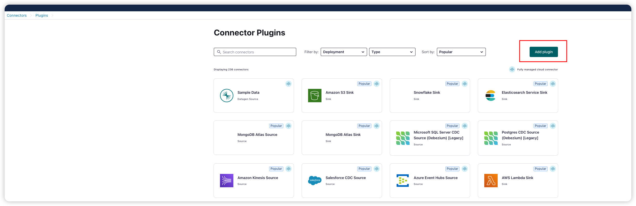 Confluent 提供了一个 connector hub,在这里可以找到所有已经内置到 Confluent Cloud 中的 Connector。对于没有内置的,Confluent 支持创建自定义 connector。
