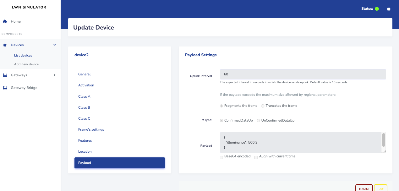 设备端(使用LWN SIMULATOR,LoRa设备模拟器)