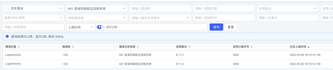 京东慧采在多个业务模块中,其中登录、商详、订单详情 3 个模块接入了业务监控。