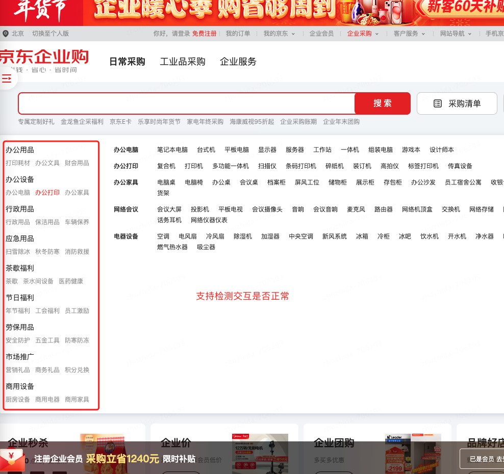 (3)商品信息楼层:是否为空、楼层类型是否正常(2 动态)、数据/商品名称/价格是否为空。