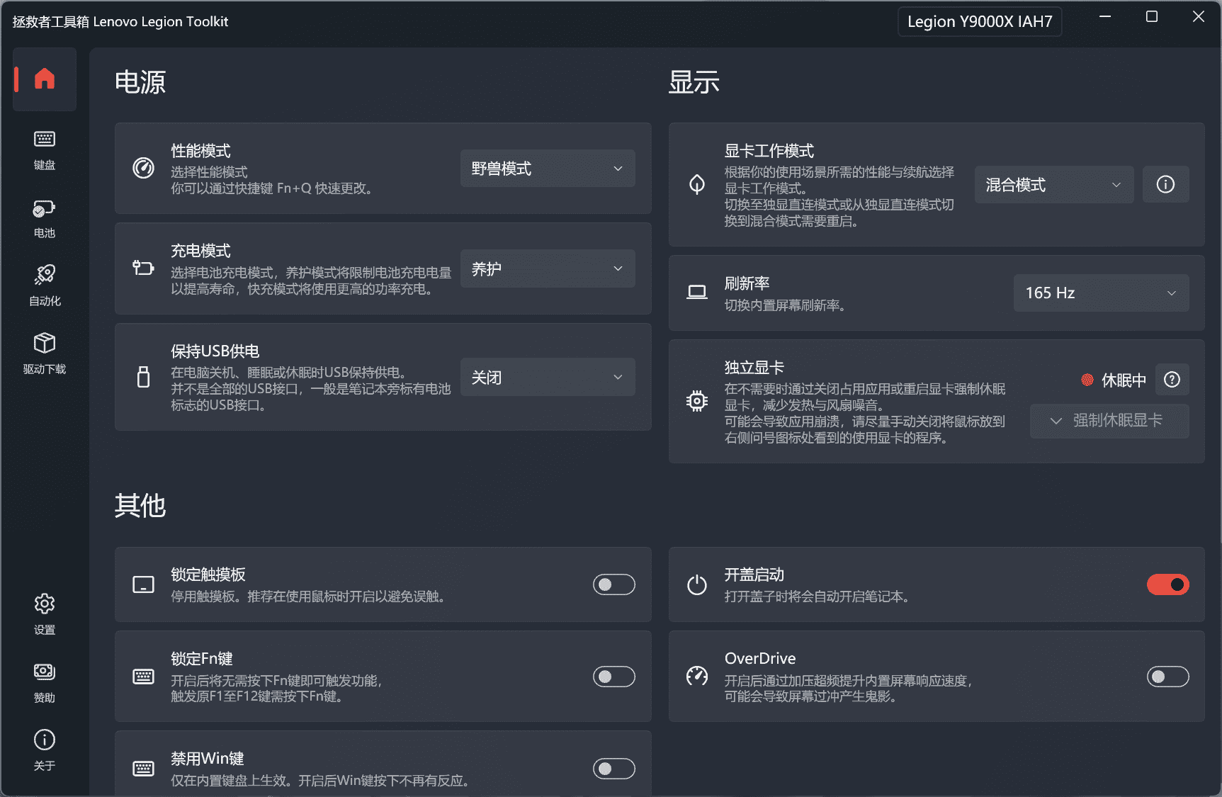 4、LenovoLegionToolkit:轻量级的联想拯救者工具箱。该项目是专为联想拯救者系列笔记本设计的开源工具,它具有小巧轻便、占用内存少、不收集用户信息等优点,支持调节电源模式、显卡工作模式、风扇速度和键盘灯效等功能,提供了中文界面,可作为联想 Vantage 软件的开源替代品。