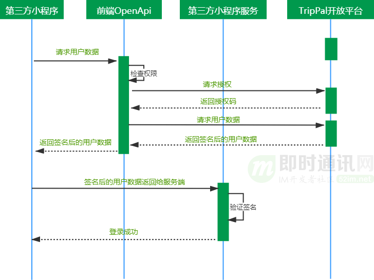 前端信任的目的是通过减少或杜绝开发者后端跟开放平台OpenAPI交互的方式,来降低开发者接入门槛,减少工作量。主要的做法是通过权限控制、签名、加密等手段使得小程序能够在前端拿到可信数据。
