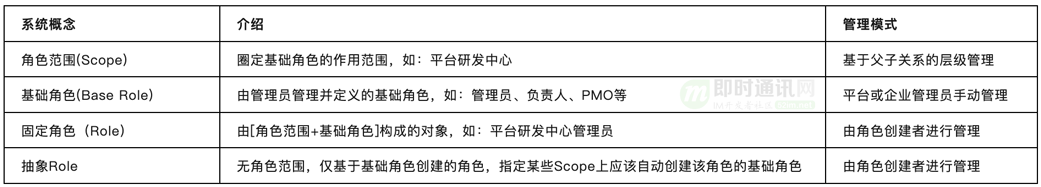 整个角色服务在产品定义上分为如下表4个主要概念: