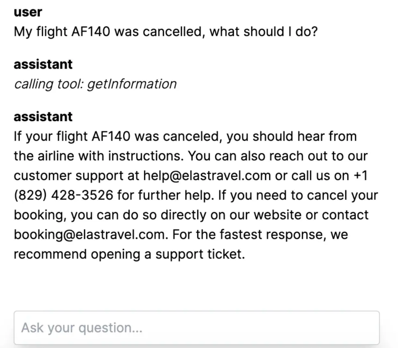 最后,我们声明处理路由 POST 调用的主函数。此函数检索用户问题,使用 findRelevantContent 函数从 Elasticsearch 检索文档,然后构建上下文窗口,将其传递给 LLM,然后将答案流回客户端。