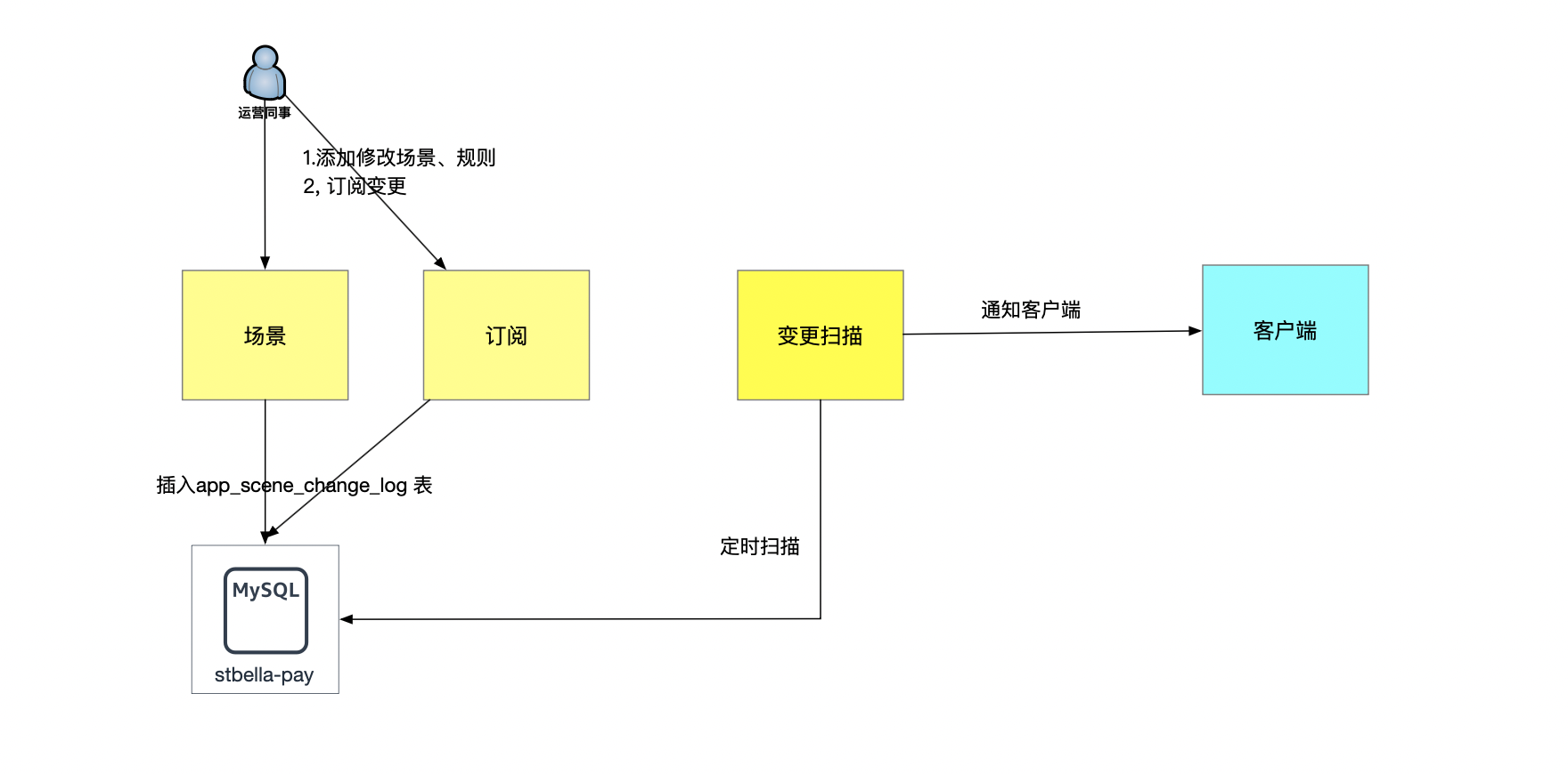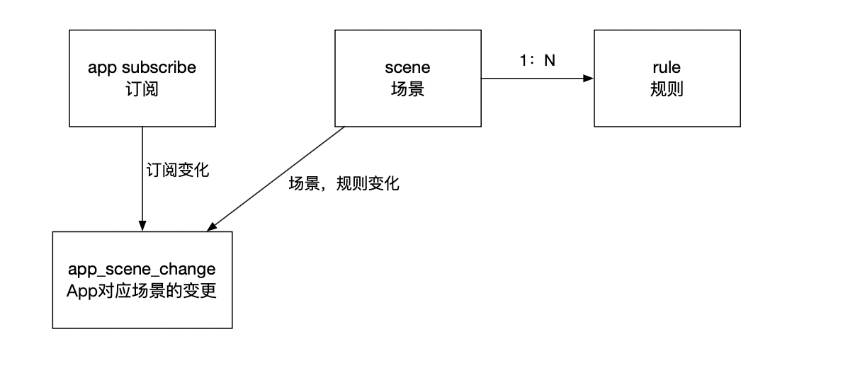 模型比较比较简单,应用订阅场景,场景及其规则变化时,或者订阅关系变化时,生成应用与场景变更记录。类似于生成者-消费都模型,使用DB做存储。