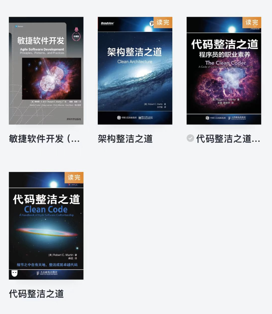 六月的那么一天,天气比以往时候都更凉爽,媳妇边收拾桌子,边漫不经心的对我说:你最近好像都没怎么阅读了。 正刷着手机我,如同被一记响亮的晴空霹雳击中一般,不知所措。是了,最近几月诸事凑一起,加之两大项目接踵而至,确实有些许糟心,于是总是在空闲的时间泡在手机里聊以解忧,再回首,隐隐有些恍如隔世之感。于是收拾好心情,翻开了躺在书架良久的整洁三步曲。也许是太久没有阅读了, 一口气,Bob大叔 Clean 系列三本都读完了,重点推荐Clear Architecture,部分章节建议重复读,比如第5部分-软件架构,可以让你有真正的提升,对代码,对编程,对软件都会有不一样的认识。