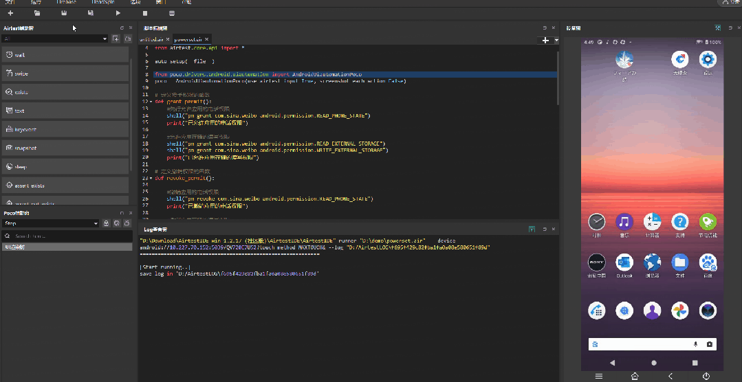 grant (授予应用权限许可)与 revoke (撤销应用权限),在 Airtest 环境的具体使用如下: