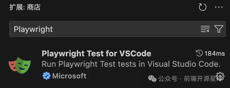 在 VSCode 扩展中搜索关键字:Playwright,找到 Playwright Test for VSCode 插件,并安装。