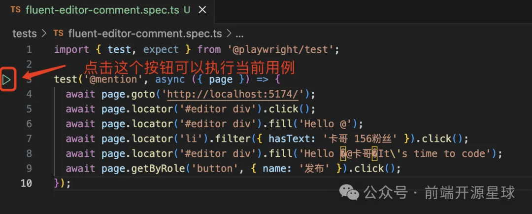 测试用例文件左边会多出来一个播放按钮,可以直接执行当前用例。