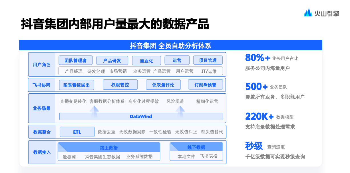 截至目前,抖音集团 80%内部员工成为产品月活用户,同时在工作日单日的产品最低查询量基本处于 200w 次以上。