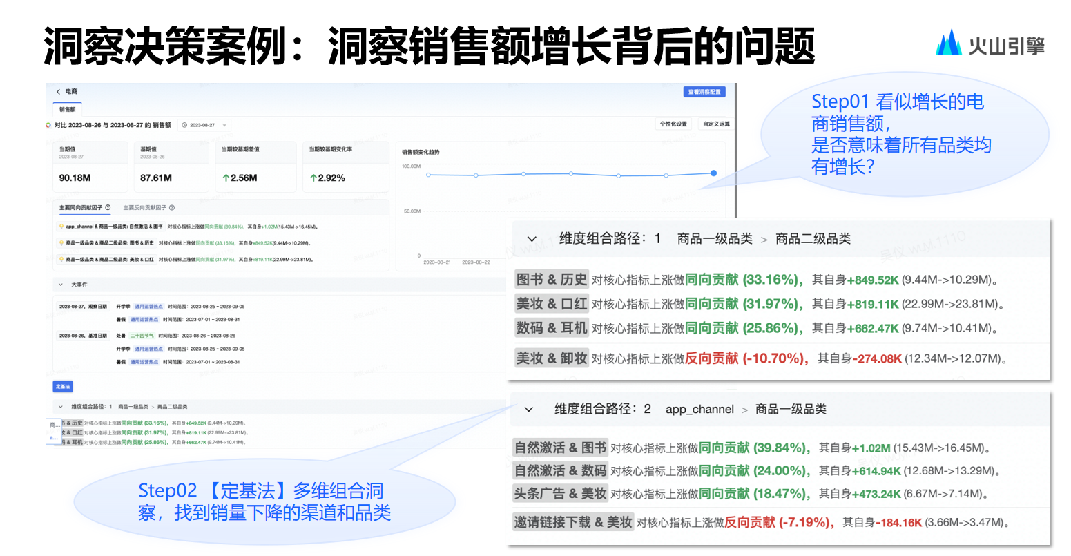 例如,用户期望大模型能帮助进行归因,告知数据为何不对或者接下来应朝哪个方向去查看。