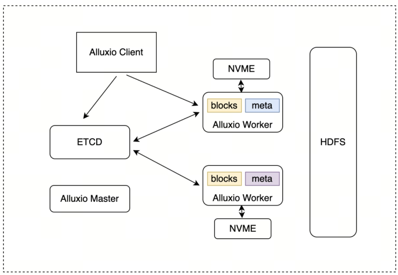 - 透明缓存:相较于其他文件系统,Alluxio 可仅作为缓存使用,用于编排数据,业务方无需将模型文件写入到其他的文件系统,只需要维持现状,写入 HDFS 即可;