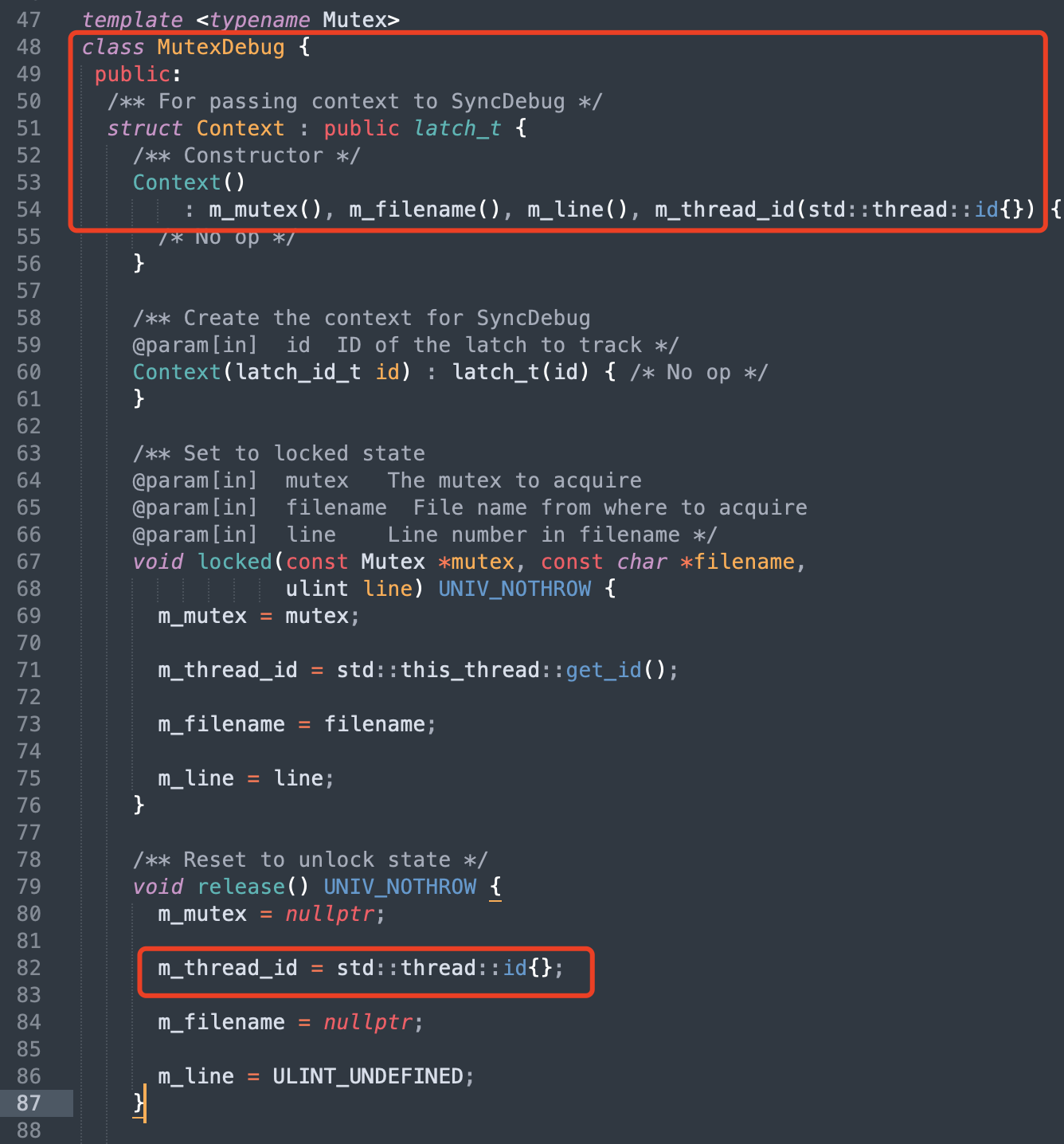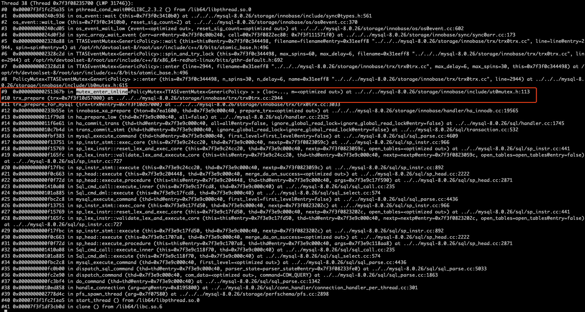 发现只有 debug 模式下才有 线程 ID 信息,普通模式下没有,因此需要编译一个 debug 版本进行复现,然后用 gdb 打印出 trx_sys->mutex 互斥锁的持有者。