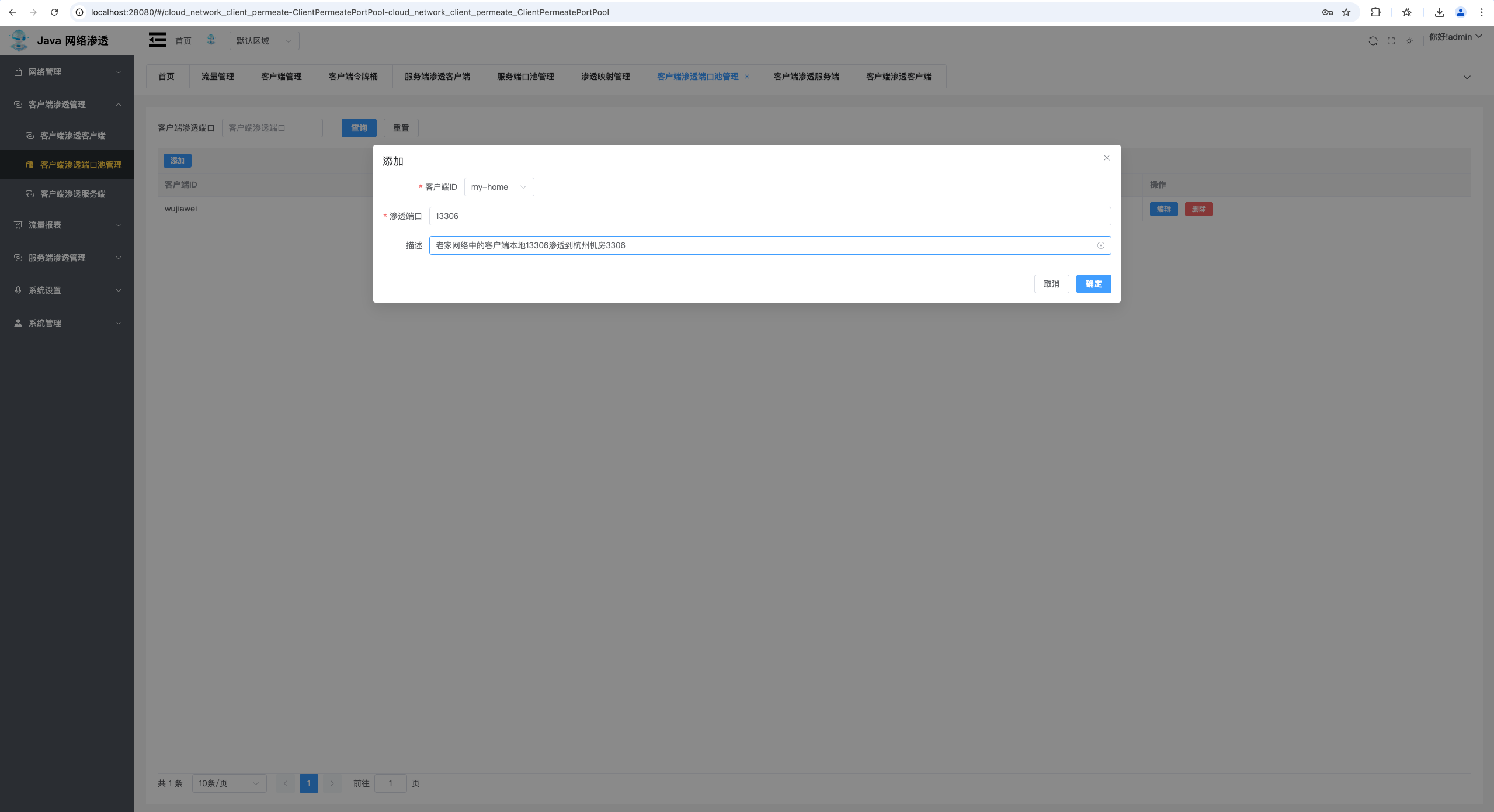 操作步骤:打开页面配置菜单看到如下界面(from客户端ID:你老家网络中的电脑,to客户端ID)