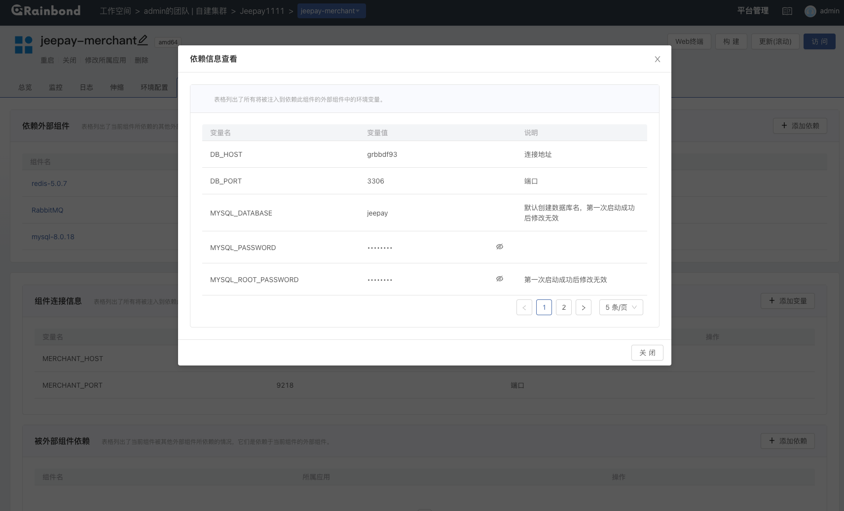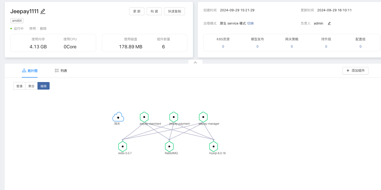- 通过 Rainbond 应用商店把整套 Jeepay 部署下来,删除其他只保留 RabbitMQ(同样来自 Jeepay提供的Dockerfile构建)