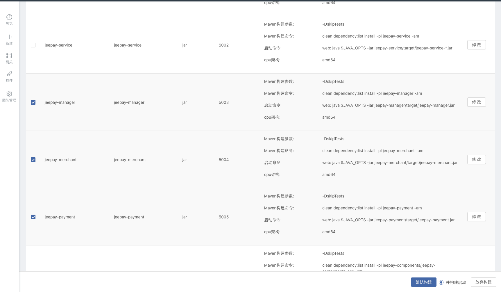 jeepay-ui-merchant、jeepay-ui-cashier重复上述操作,只修改子目录路径即可。 - 建立前端到后端服务的依赖关系。