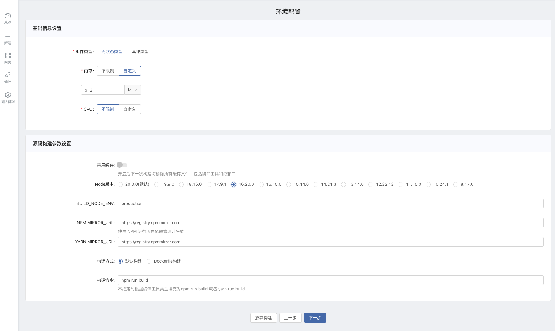 - 修改完成后,选择基于源码构建组件,填写 Git 相关信息