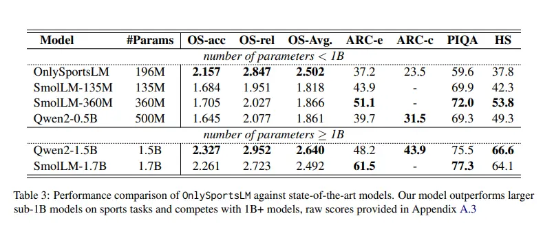 - 论文名称:OnlySportsLM: Optimizing Sports-Domain Language Models with SOTA Performance under Billion Parameter