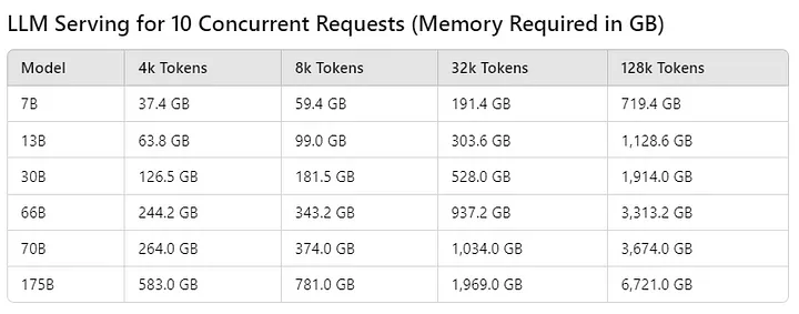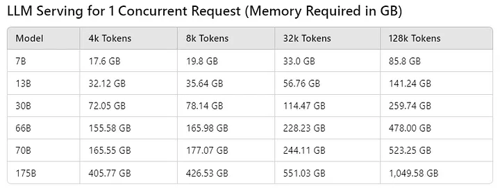 - Multiple Users:同时服务多个请求会成倍增加所需的KV缓存内存。