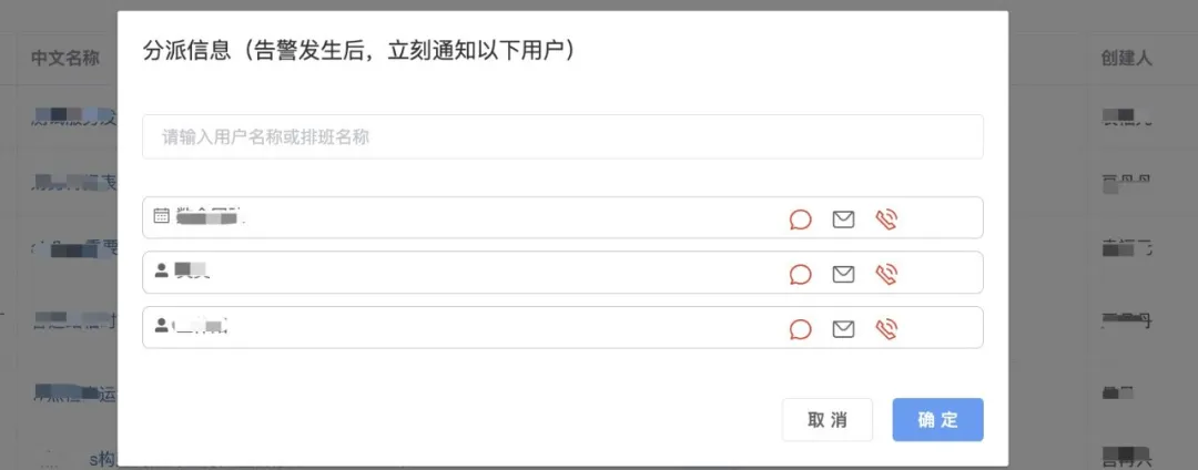 1. 在内部告警平台上,配置分派信息对特定的告警人员进行详尽的配置