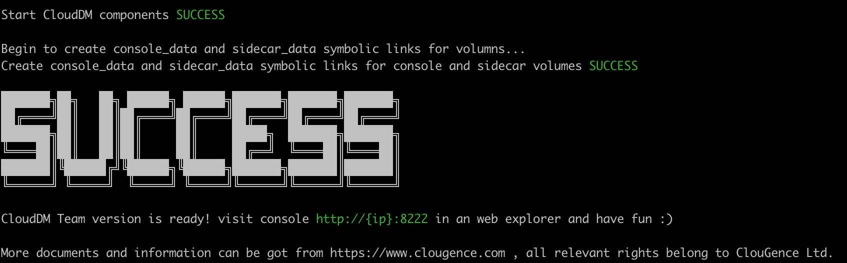 当执行 “install.sh” 脚本后,等待 SUCCESS 出现就表示安装成功。