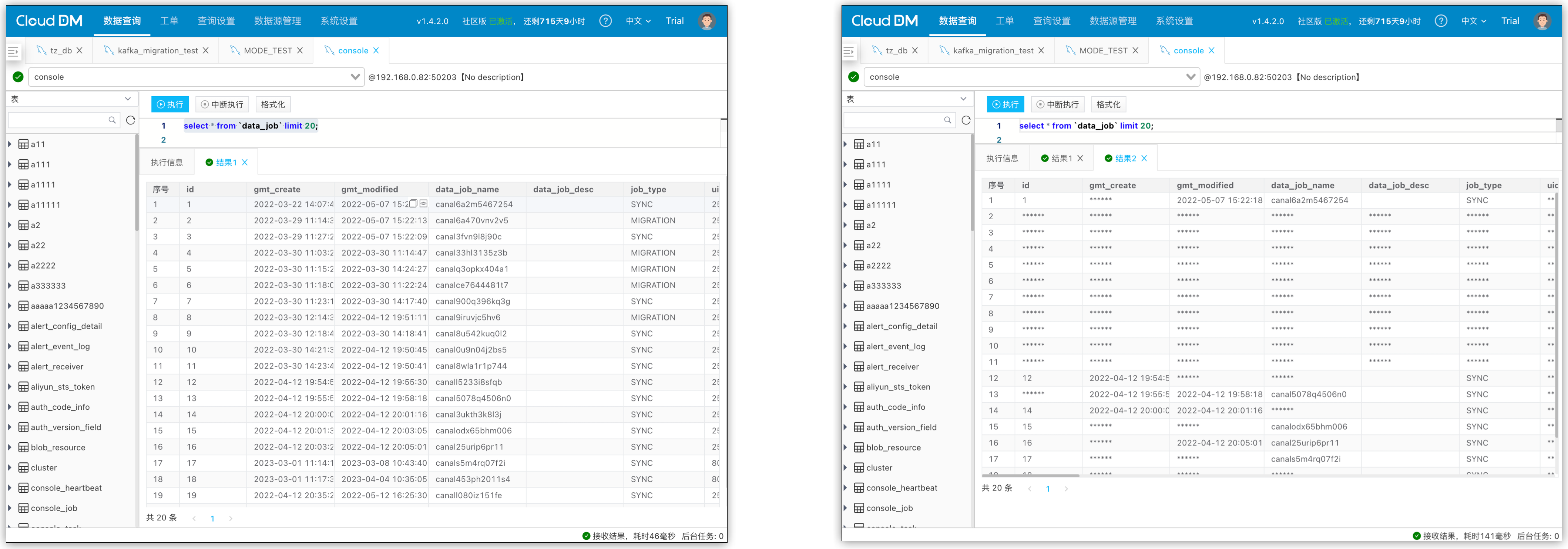 | 数据脱敏范围 | 可选择对 单个值 或 整行 进行数据脱敏 | |