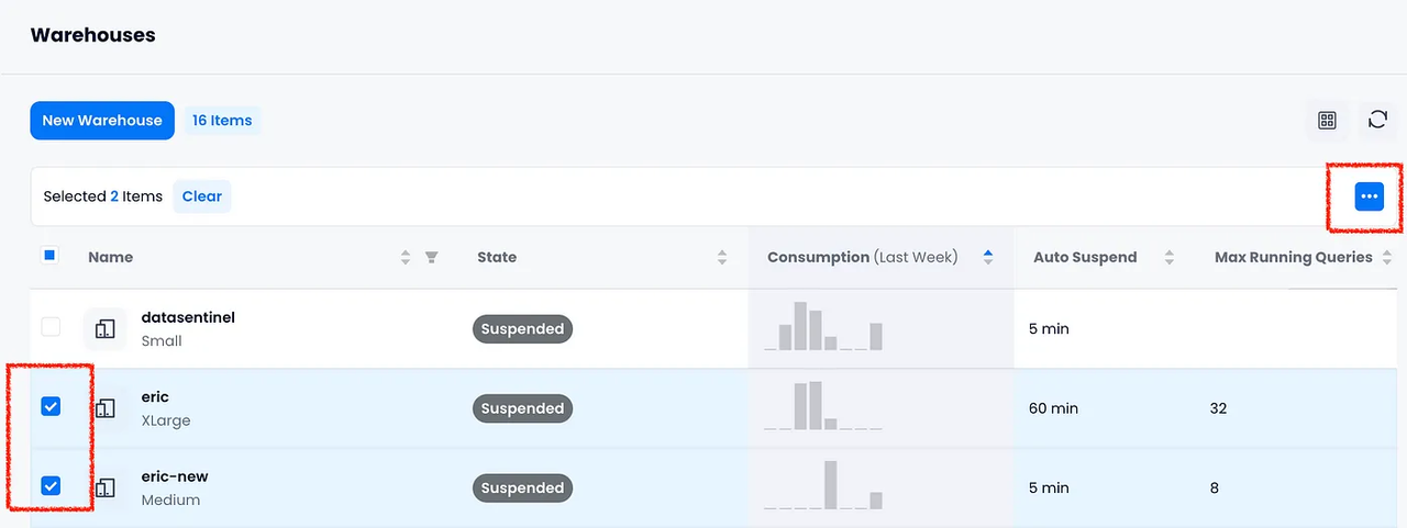 您可以对计算集群执行批量操作,包括批量重启、批量暂停、批量恢复和批量删除。要进行批量操作,可以在计算集群列表中勾选所需操作的计算集群,然后点击省略号按钮选择所需的操作。