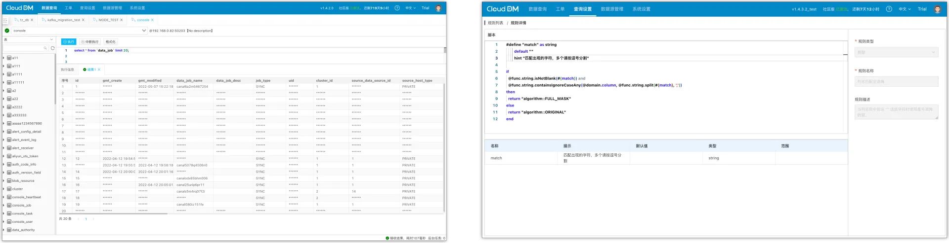 - 对查询结果进行脱敏保护,从而避免数据隐私泄漏及法律风险。