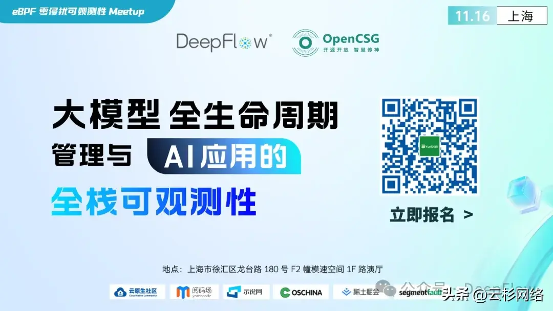 eBPF 零侵扰可观测性 Meetup · 上海站开始报名啦!本次活动主题为《大模型全生命周期管理与 AI 应用的全栈可观测性》,精彩议程大咖云集,欢迎扫描二维码锁定席位~