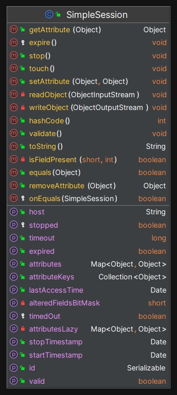 SimpleSession simpleSession=(SimpleSession)session;//Shiro 顶级 Session 接口中没有定义 isExpired() 方法,这里强转成 SimpleSession