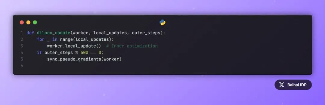这种做法巧妙地结合了局部和全局更新的优势,有望加快收敛速度并提升训练表现。DiLoCo 通过让节点先在局部优化参数,再与全局模型同步,充分发挥了两种更新策略的长处。