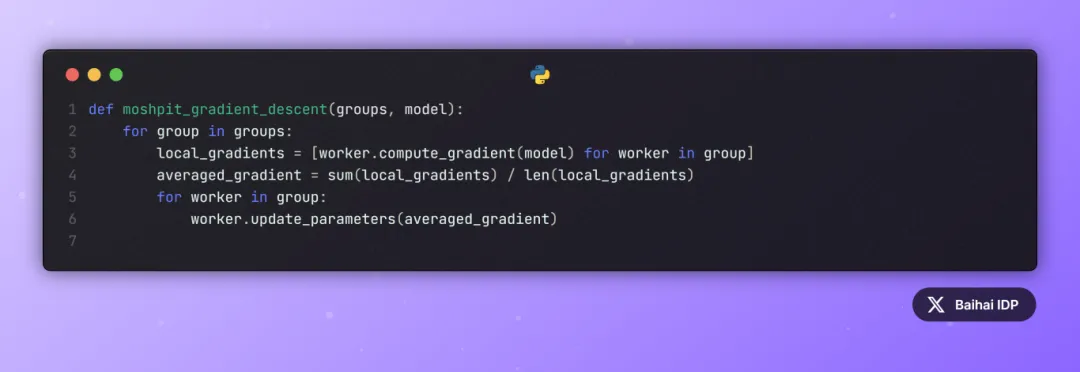 - Moshpit Gradient Descent:允许 workers 在小型独立组内进行梯度平均,增强训练的容错能力。