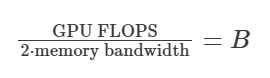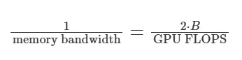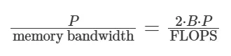 使用多层感知机(MLP),浮点运算次数(FLOPS)大约是参数数量的两倍乘以 batch 中元素的数量[1](即为 2 * m * n * b,数据批次大小(batch size)为 b ,矩阵为 m x n )。因此,当传输时间等于计算时间时,意味着: