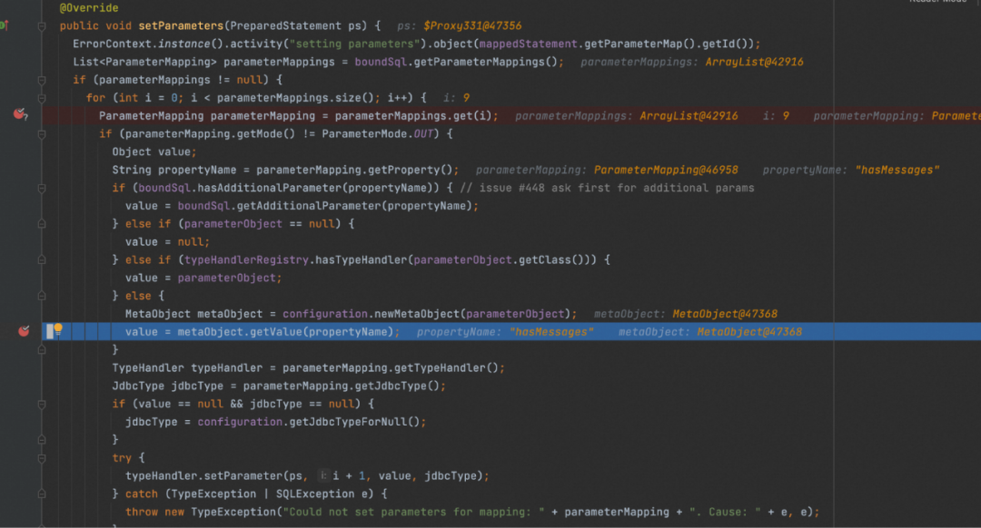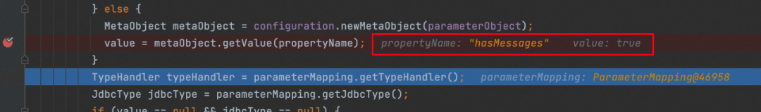 MyBatis 会查找参数对象中是否存在 getHasMessages() 方法或者 hasMessages 字段。
