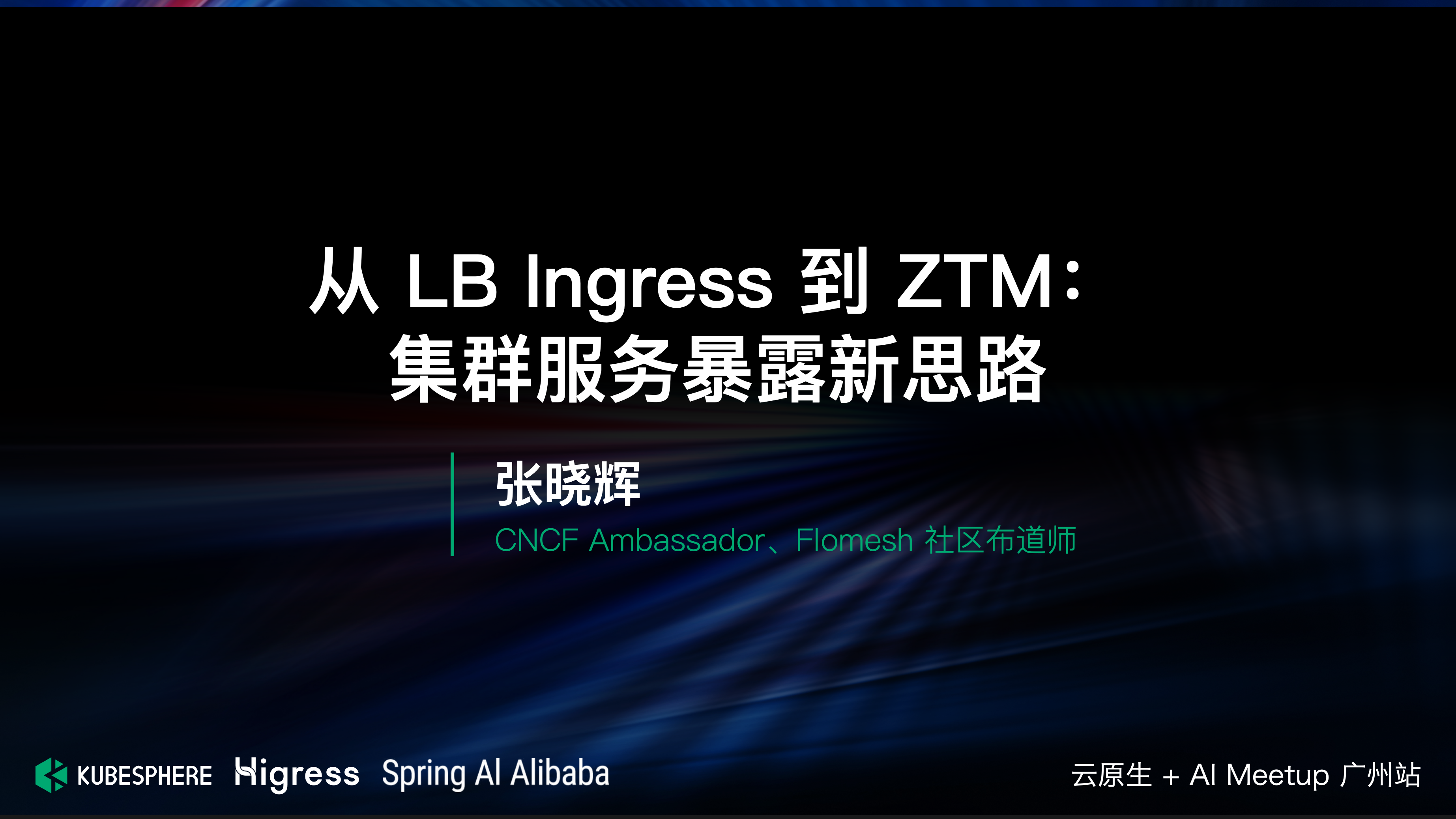 12 月 28 日, KubeSphere 社区联合 Higress 社区主办的云原生 AI Meetup 广州站成功召开,我们非常荣幸邀请到CNCF Ambassador、Flomesh 社区布道师------张晓辉老师,张老师为大家带来了一场主题为「从 LB Ingress 到 ZTM:集群服务暴露新思路」的主精彩分享。以下为演讲实录,干货满满!感兴趣的朋友可以转发收藏一下。
