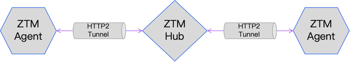 - ZTM Hub:分布式部署的接入点,与每个 Agent 建立加密隧道,转发来自 Agent 的请求,实现多点接入和高可用性。