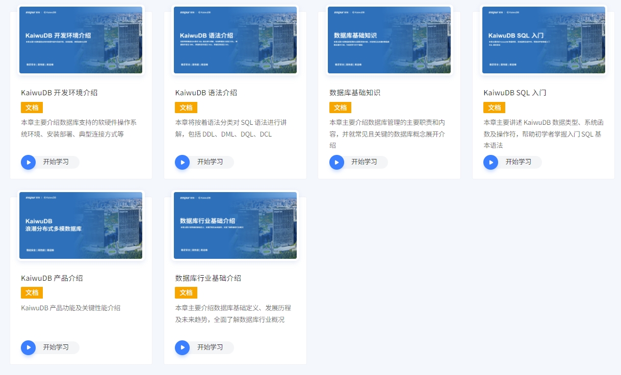 KaiwuDB 数据库工程师认证是 KaiwuDB 开发的在线课程体系,旨在通过详细完整的在线学习,帮助大家快速掌握 KaiwuDB 的产品架构、部署安装、核心功能、应用案例等基础知识。