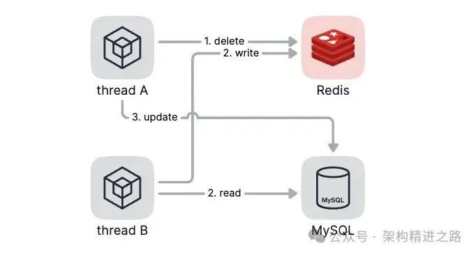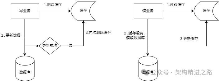 在更新数据库后,删除缓存,并在一定延时后再次删除缓存,确保缓存数据更新。