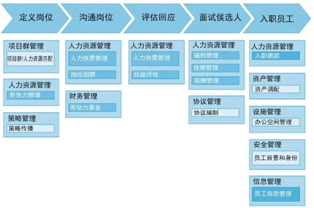 下面是一个讲清楚实现“招聘员工”这个事情的案例,就是采用了“价值流映射到业务能力”的方法。
