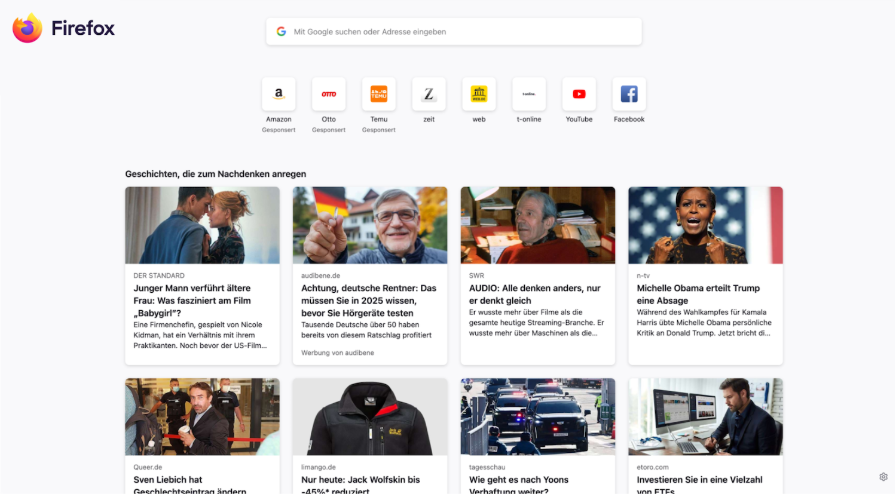 - 之前在 Firefox 134 中向美国用户推出的全新 New Tab 布局现已在所有提供 Stories 功能的国家/地区推出。新版 logo 经过重新定位,优先显示网页搜索、快捷方式和 Recommended Stories。此次更新还包括对 Recommended Stories 卡片 UI 的更改,并允许大屏幕用户查看最多四列,以更好地利用空间。