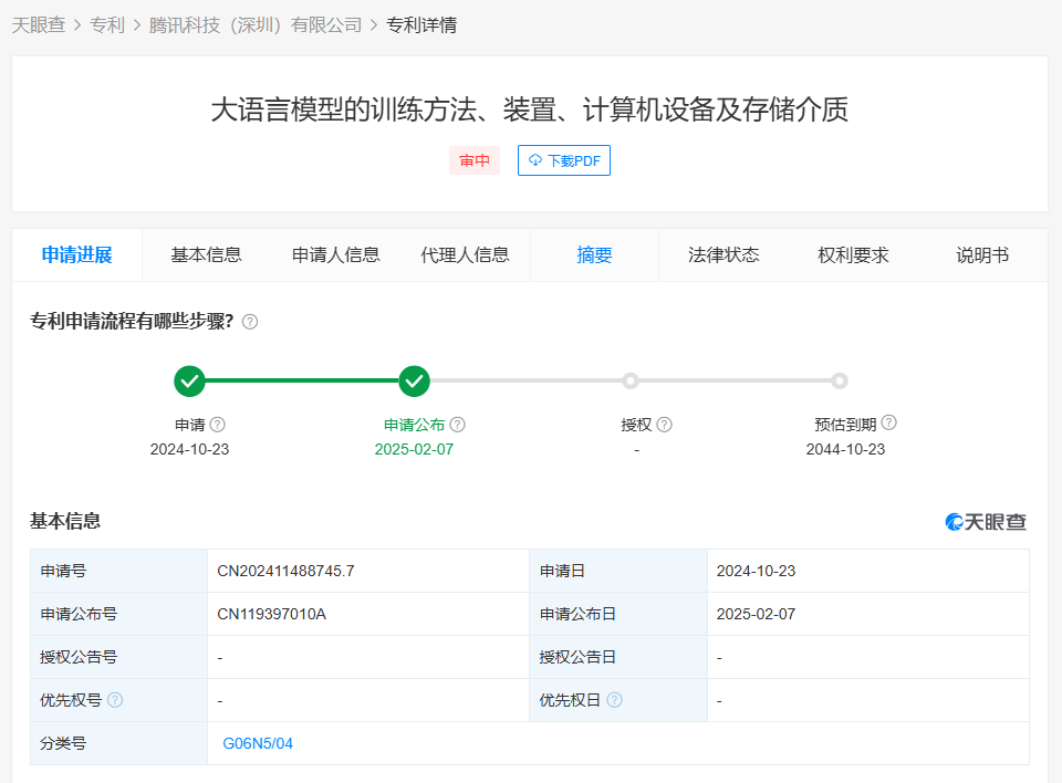 天眼查App显示,腾讯科技(深圳)有限公司申请的“大语言模型的训练方法、装置、计算机设备及存储介质”专利正式公布。