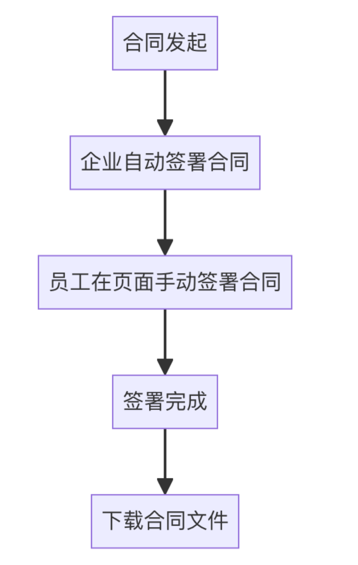 接口调用流程说明:添加个人用户-添加企业用户-企业印章制作-上传签约文件-合同发起-企业自动签署-员工手动签署合同-下载合同文件。