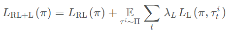 融合了 RL + 听说双重奖励后,用于训练智能体的强化学习损失函数如下: