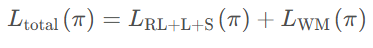 最终,完整的损失函数结合了强化学习(RL)、听力(Listening)、表达(Speaking)、世界建模(WM):
