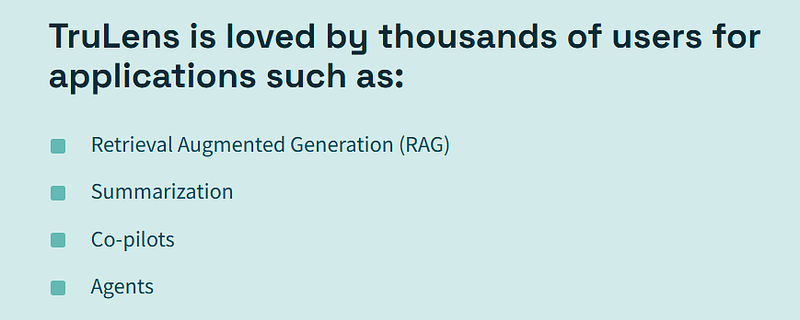 在其官方网站上,他们提及了在 Agents 评估过程中应用 TrueLens。若您打算采用 TrueLens,其便捷程度与其他工具无异。