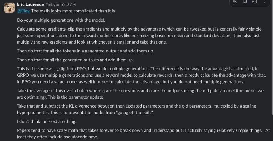 TLDR ~ 大幅降低了计算需求且简化了强化学习流程。与 ChatGPT(PPO)使用的基于人类反馈的强化学习(RLHF)相比,所需的计算资源几乎减半。当你结合 LoRA 使用时,即使"GPU poor"(译者注:GPU 的性能不足)也能进行强化学习训练。我试过了,确实有效。我成功地将 1B 参数的 Llama 3.2 模型改造成了仅需 16GB 显存的推理模型。后续文章会分享代码和硬件要求细节。